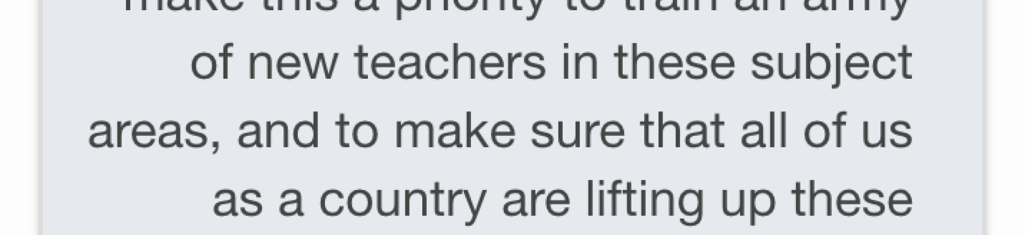 “One of the things that I’ve been focused on as President is how we create an all-hands-on-deck approach to science, technology, engineering, and math… We need to make this a priority to train an army of new teachers in these subject areas, and to make sure that all of us as a country are lifting up these subjects for the respect that they deserve.”